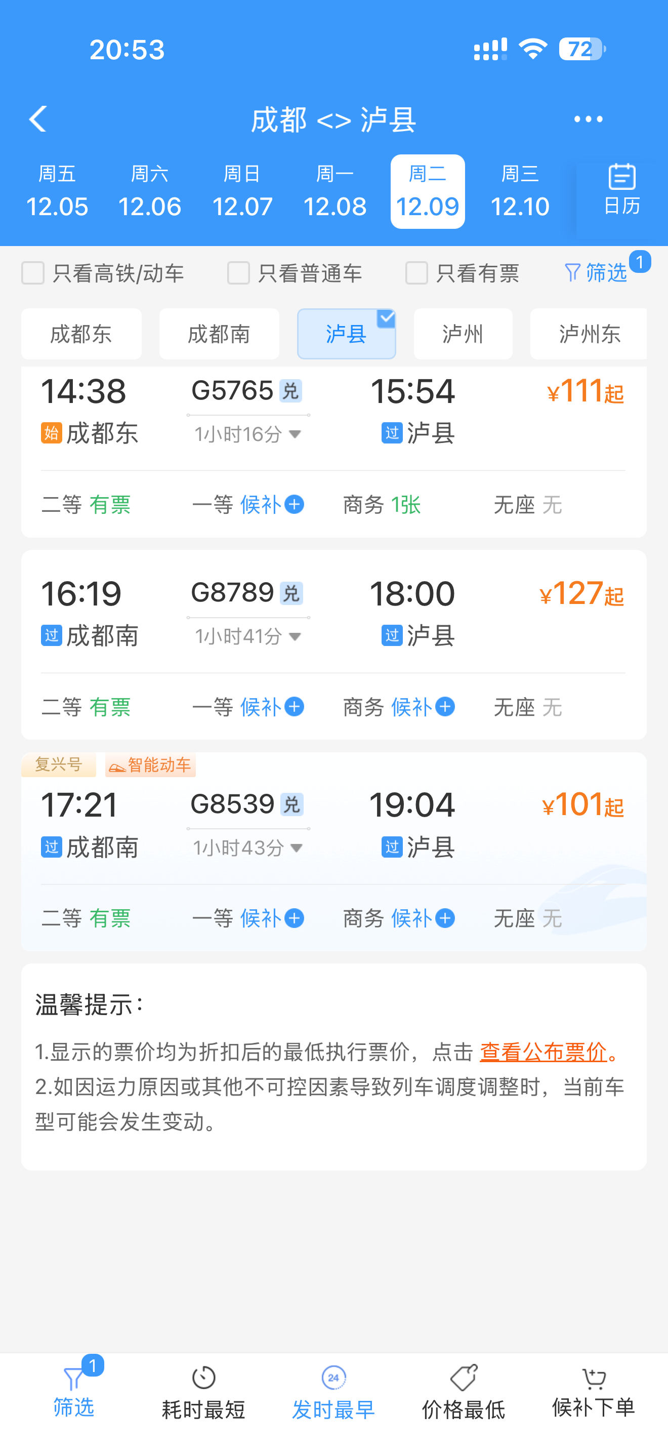 您好,我是一位在成都工作的泸县人,还有3个月就到春节了,有许多泸县人会和我一样会在春运期间抢回家的高铁票,下班后急匆匆地赶到高铁站坐车回家。但我发现成都到泸州的车次有很多,最晚能够到晚上九点半但是从成都到泸县的车次最晚只有下午五点半的车,否则坐晚一些的车次只有坐到泸州后再转车,花费更多返乡人回家的时间。请问有关单位在列车调图时能否在下午及晚上的成都到泸州的原车次到达站点上增加一些泸县站,让更多返乡人能够尽早地回家而不用在泸州花费更多的时间转车