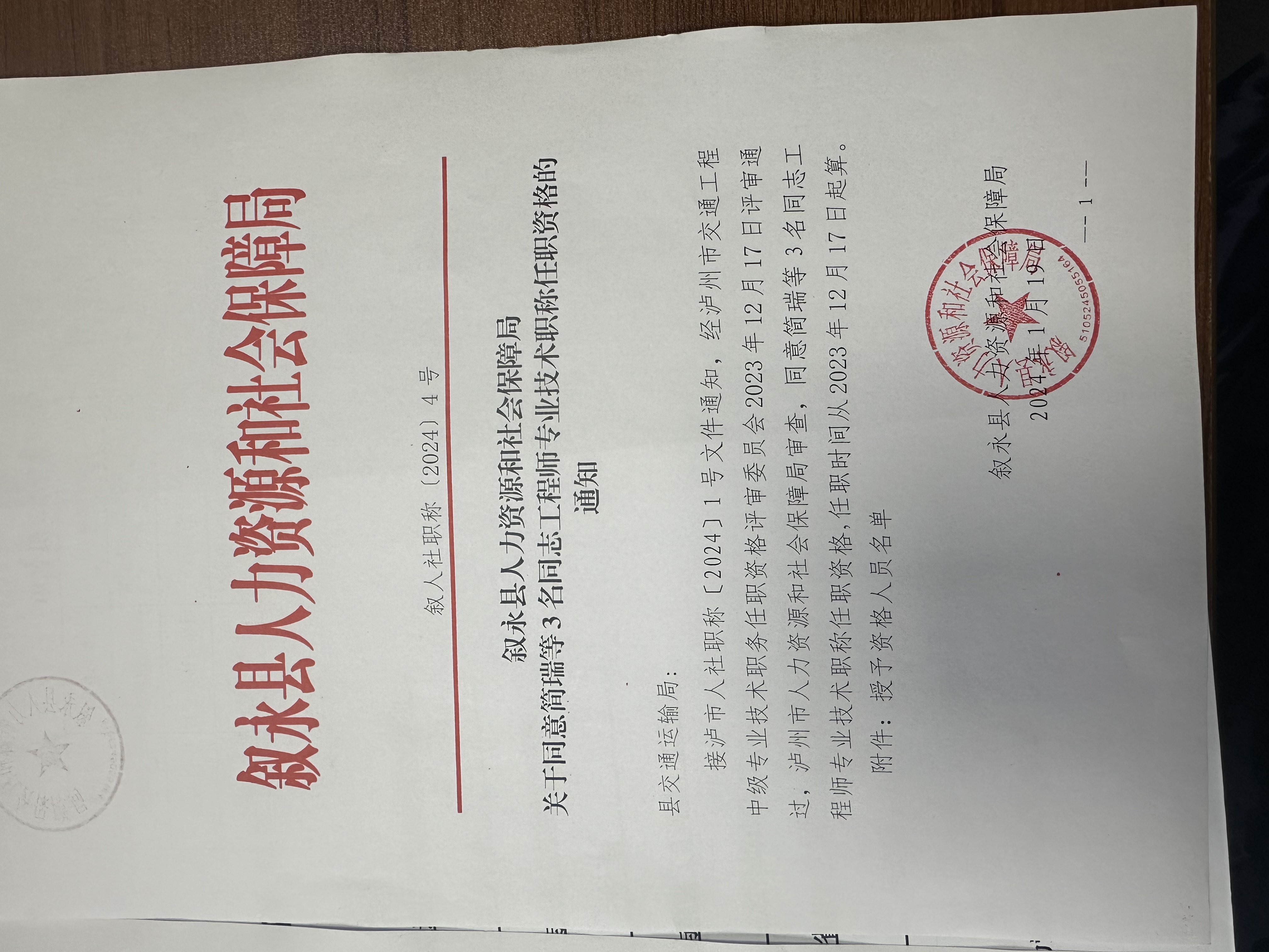 我于2023年12月通过中级职称评审(道路工程工程师),是叙永委托市上评审的。由于中级职称证书无纸质版,只能在四川人社平台查询电子证书,但是通过评审后快2年,在四川人社仍查不到我的中级职称证书。期间多次播打过叙永人社职称科室电话(0830-6226599):2025年9月25日去电,回复我哪个单位评的哪个单位上传(我又去电泸州市交通运输局人事科0830-2285263以及泸州市人社局职称科0830-3107838,泸州市人社回复我该叙永县人社局上传,市人社给叙永县人社去电后,让我再播打叙永人社人事科电话)。2025.9.26我再次拨打叙永人社职称科,此次回复的确证书该叙永人社上传,但是还要和市上对接。2025.10.23和28号我再次去电叙永人社人事科,回复我系统问题,未能上传。2025.12.4再次去电叙永人社人事科,回复我系统需要市上开通还是啥原因,需要再次对接。