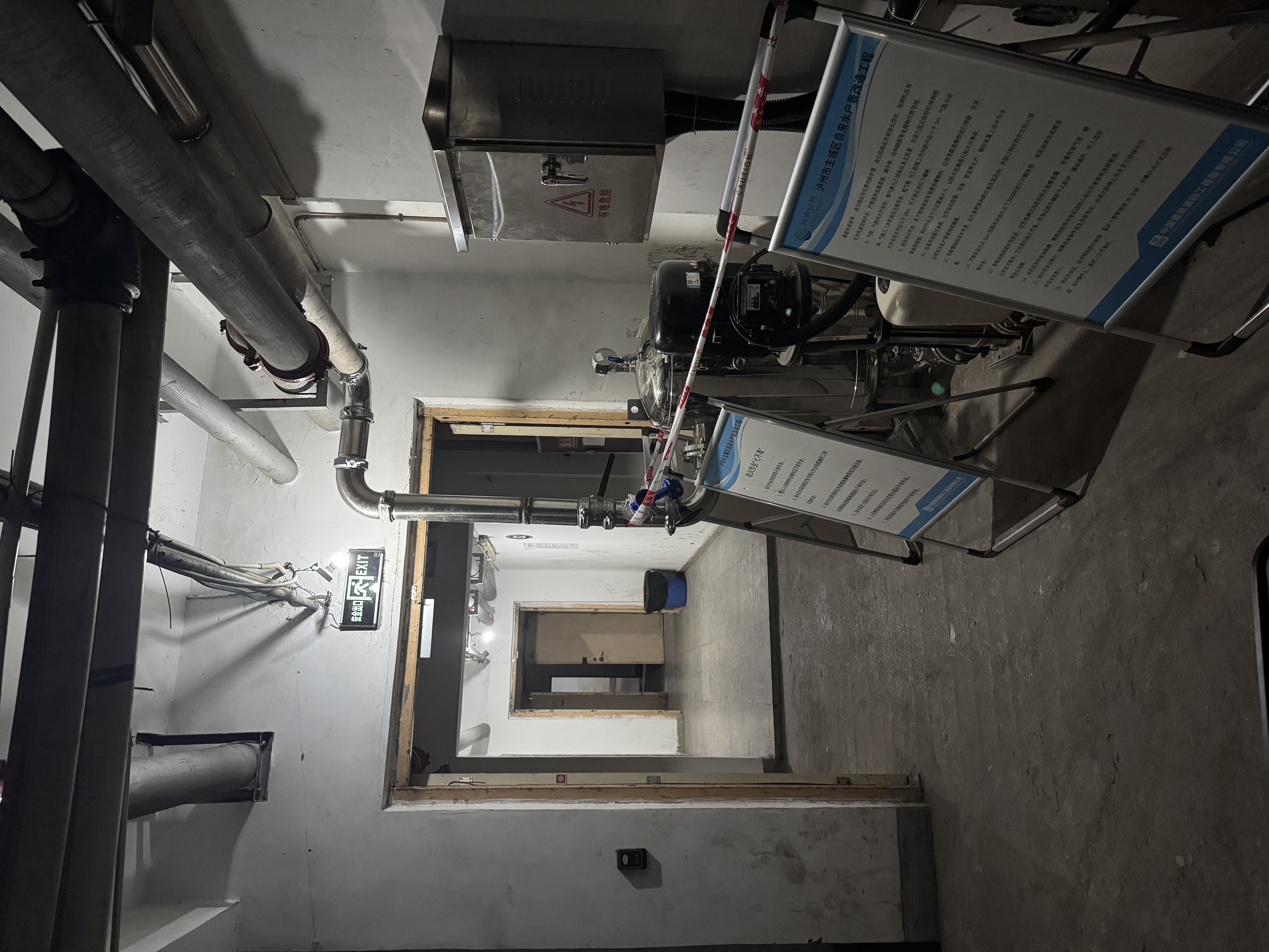 经核查,因富临花园小区在进行水表改造,以前的生活用水水泵要拆除重新改造,兴泸水务施工人员在生活水泵房旁的通道上临时安装了水泵,作为施工期间给居民临时供水,待水表改造完成后就会拆除。