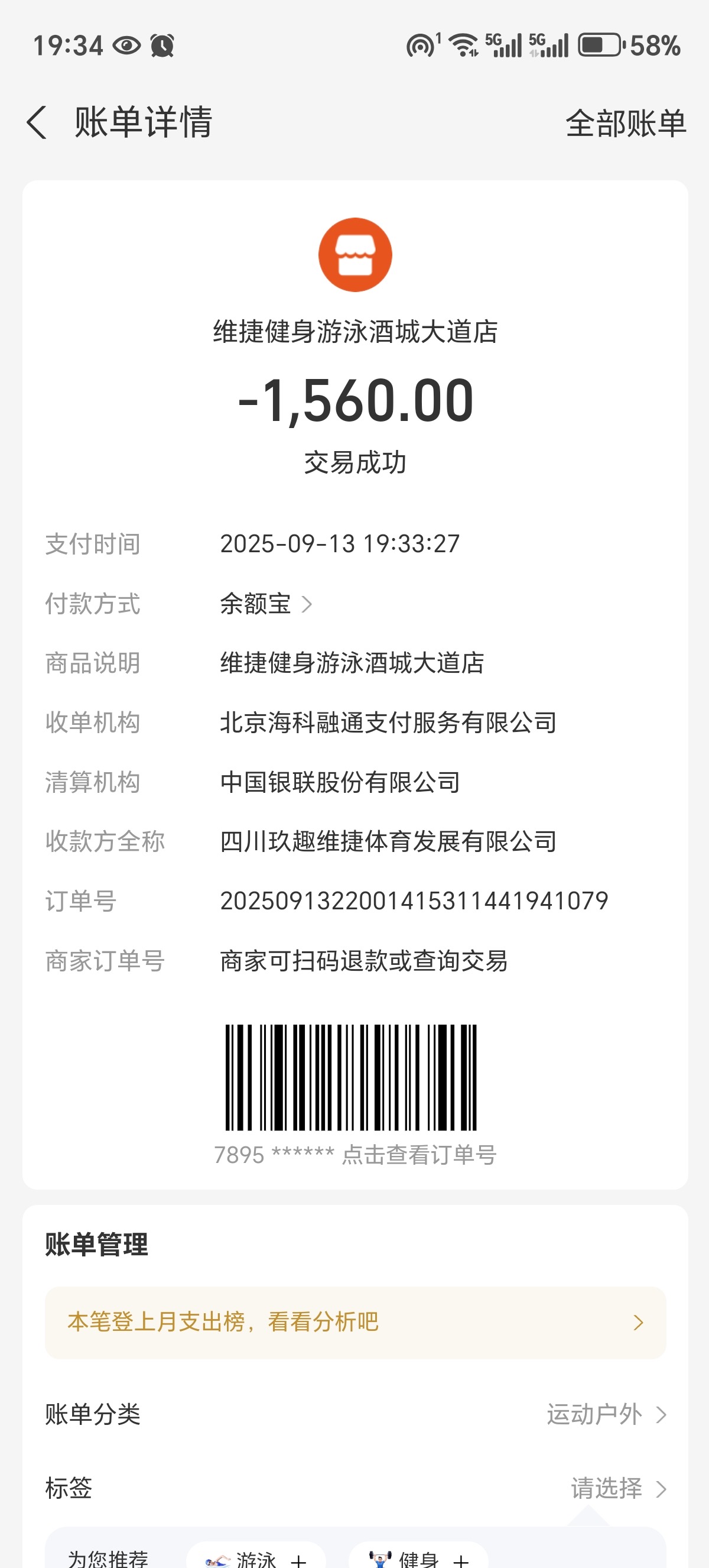 我2025年9月13日在泸州市维捷健身游泳酒城大道店支付1560元给两个孩子报了包过游泳班,10月份老板跑路,门店关门,一次课都没上过。挣钱不容易,恳请相关部门帮我追回款项,万分感谢🙏下面附上支付截图。