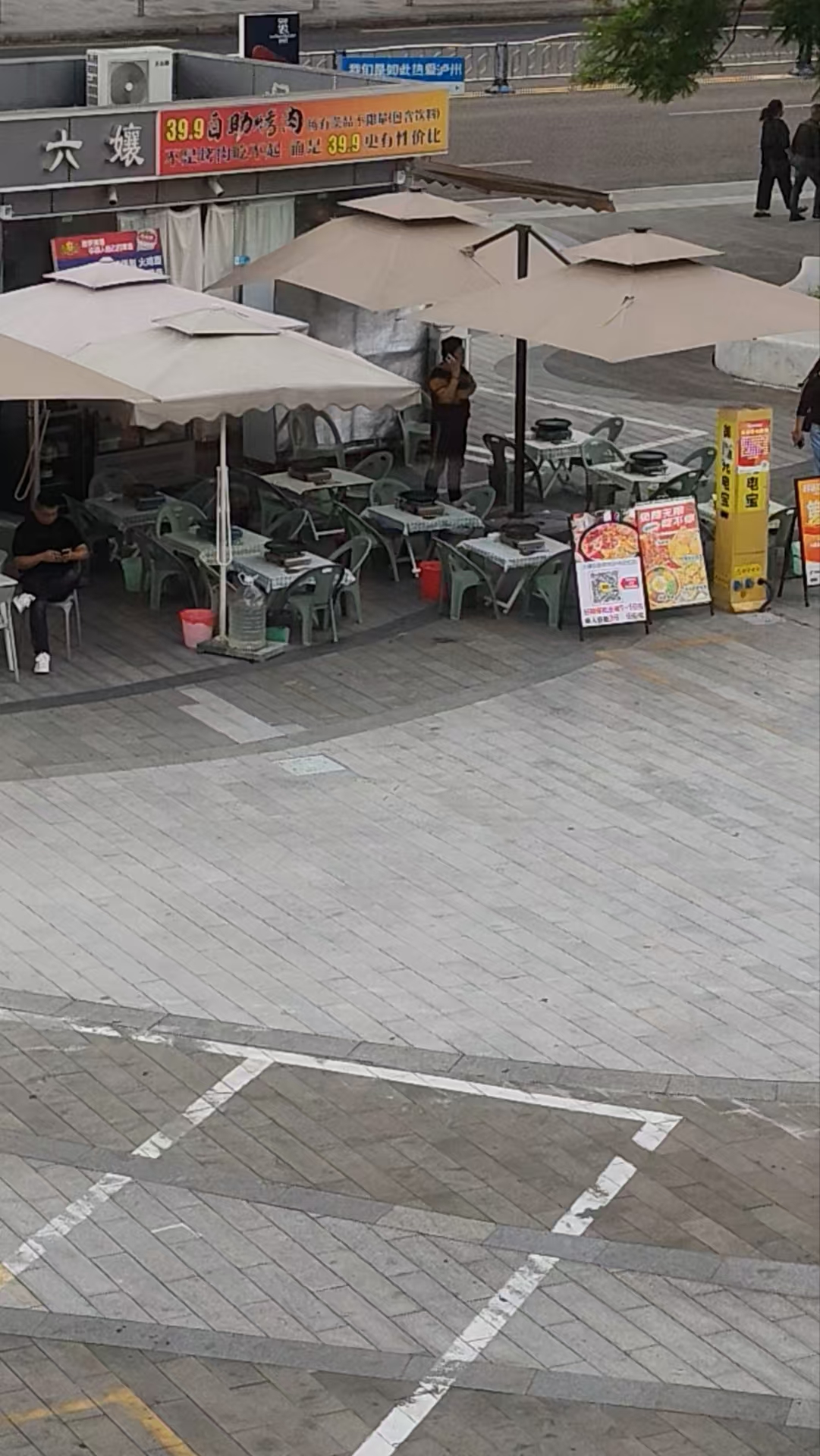 经调查,我局根据您提供的商家信息“六嬢自助烤肉”进行现场检查,商家经营场所为临时搭建,已取得《四川省食品经营备案证》(食品摊贩),从业人员健康证等证照齐全有效。现场核查商家经营场所内餐饮设备设施基本完善,已按照要求配备餐具消毒柜。检查过程中,发现商家存在原材料贮存不当问题,我局立即对该商家下达《责令整改通知书》,明确限期进行整改,要求规范食品贮存管理,同时加强配菜区环境卫生整治。后续,我局将跟踪督促整改落实情况,确保整改到位,切实保障消费者食品安全权益。