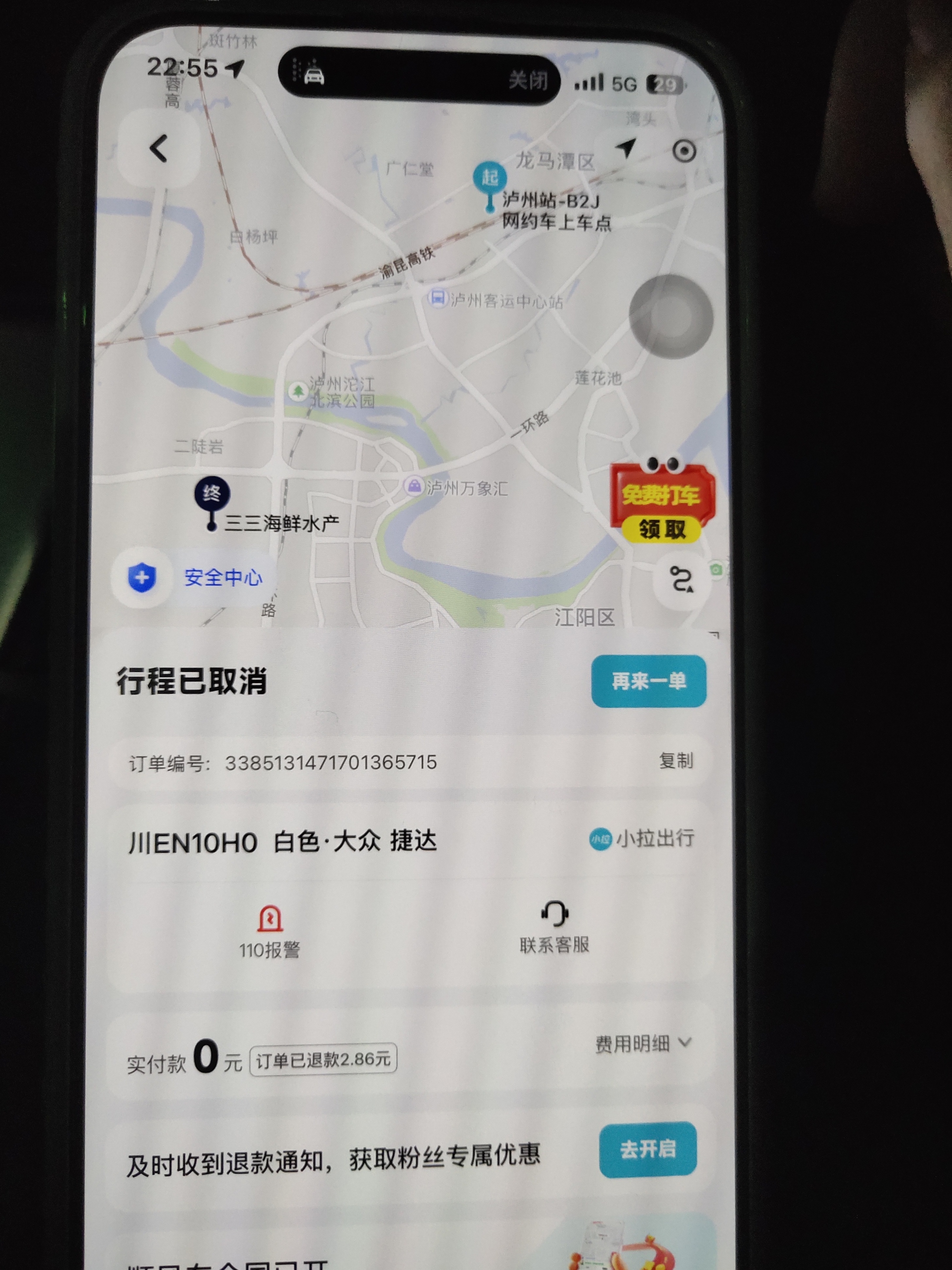 交通运输局的同志你好,我与12月13日晚上10时左右在泸州高铁站网络出租车上车点用小拉出行呼叫了一辆网约车,车牌号为川EN10H0的车辆接了该订单,几分钟后该车司机与我联系让我等几分钟,结果我等了20多分钟该车一直未来,后通过运输管理小程序查询该车并未取得网络预约出租车资格证,既我们说的黑车,这样非法营运的车辆都能接单。现恳请你们执法部门对该车的非法营运行为进行处罚,并对该小拉平台也一并处理!