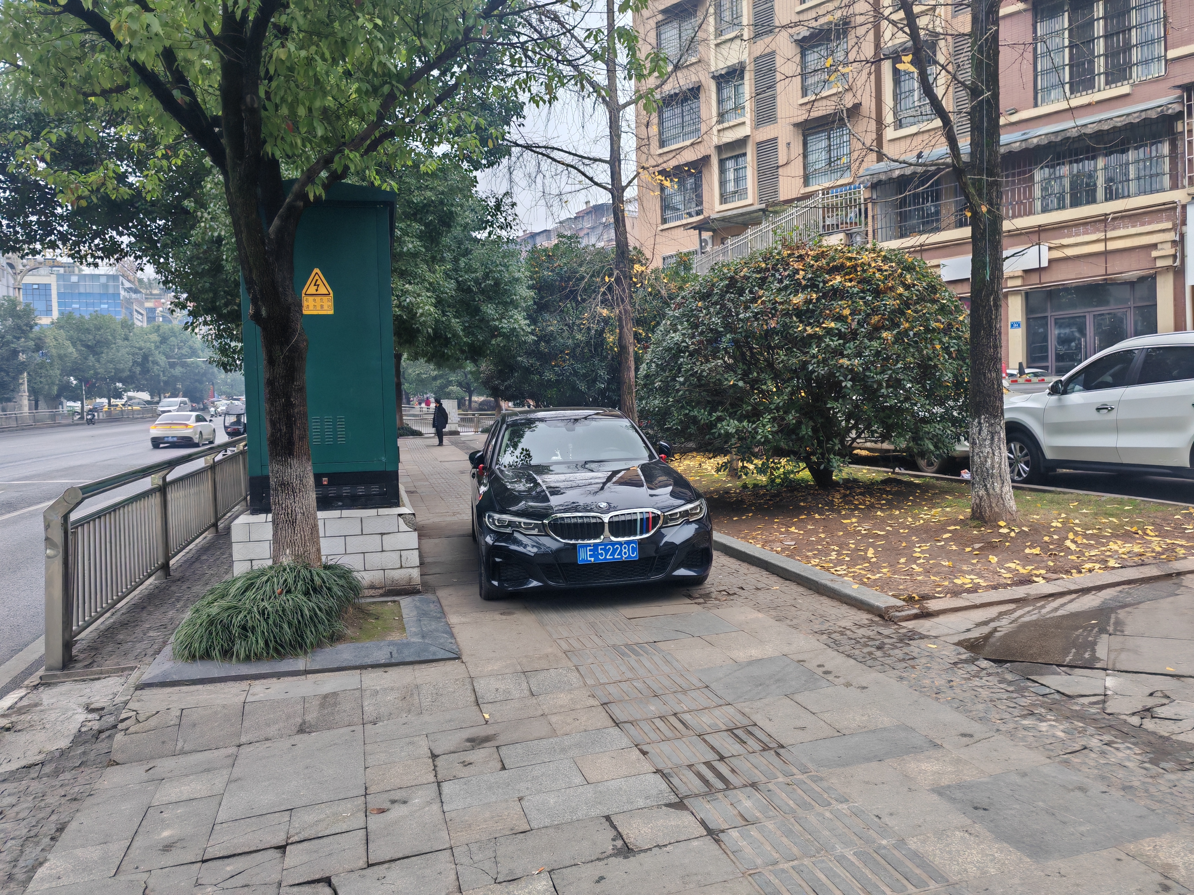2025年12月19日早上8点17分,有一辆车牌号为川E5228C的车辆,一直停放在叙永镇中心学校对面的行人道路上,占用行人道路,导致行人通行不便,希望交警依法进行处罚。
