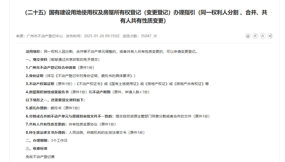 今年1月,广州市等地相继出台了住宅、商业、工业等产权在符合一定的条件下,比如消防、安全、外立面、公共区域等的情况下,可以合并、分割相应产权,不动产登记中心可以分割办证。