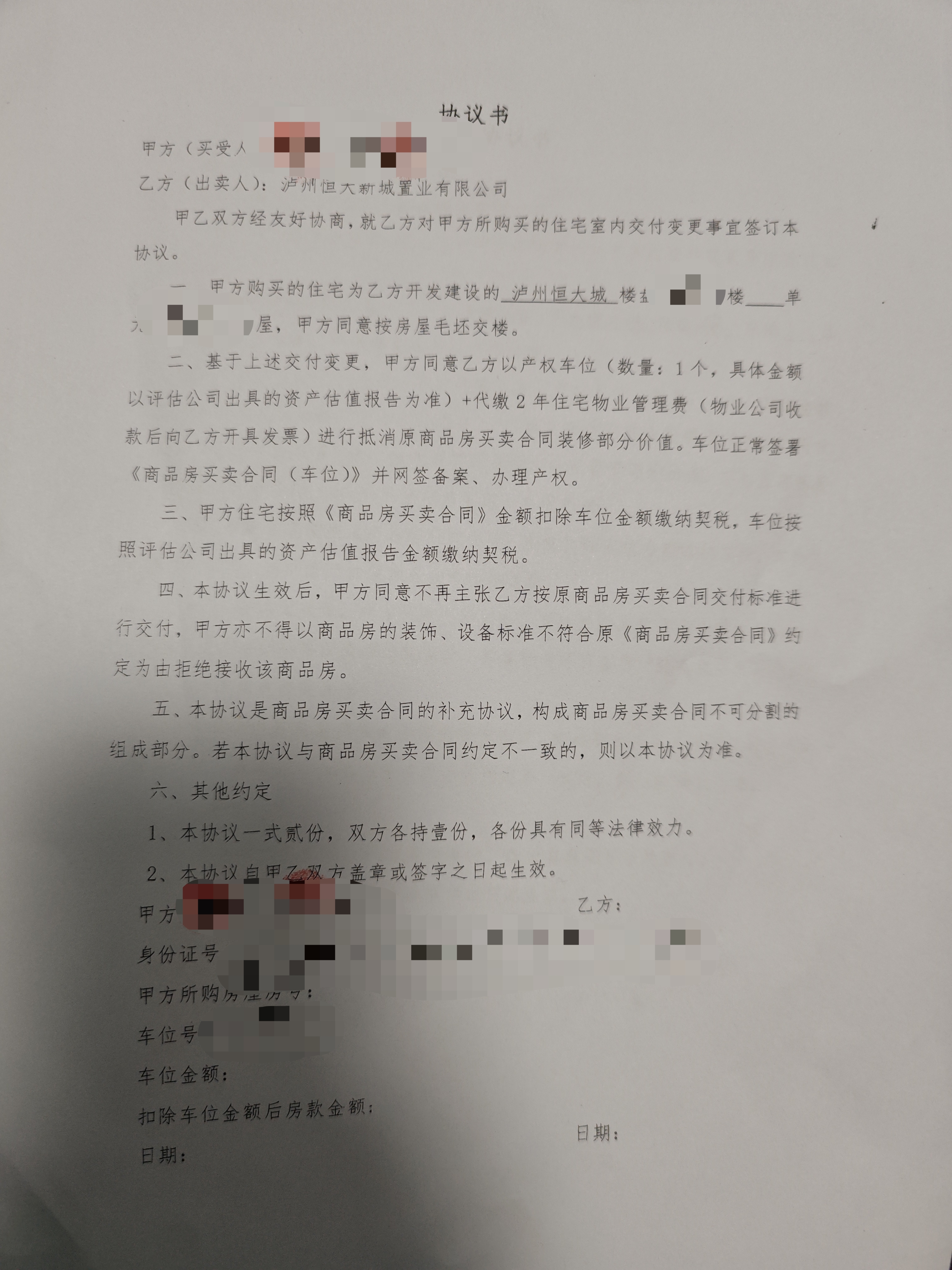 恒大城四期补偿的车位属于新购买性质不?近期恒大城组织业主签订车位协议,缴纳车位契税、维修基金等费用,这是当前发生的事情,请问根据泸州的政策,我们签订车位协议属于新购买车位吗,能否享受政府车位补贴政策?