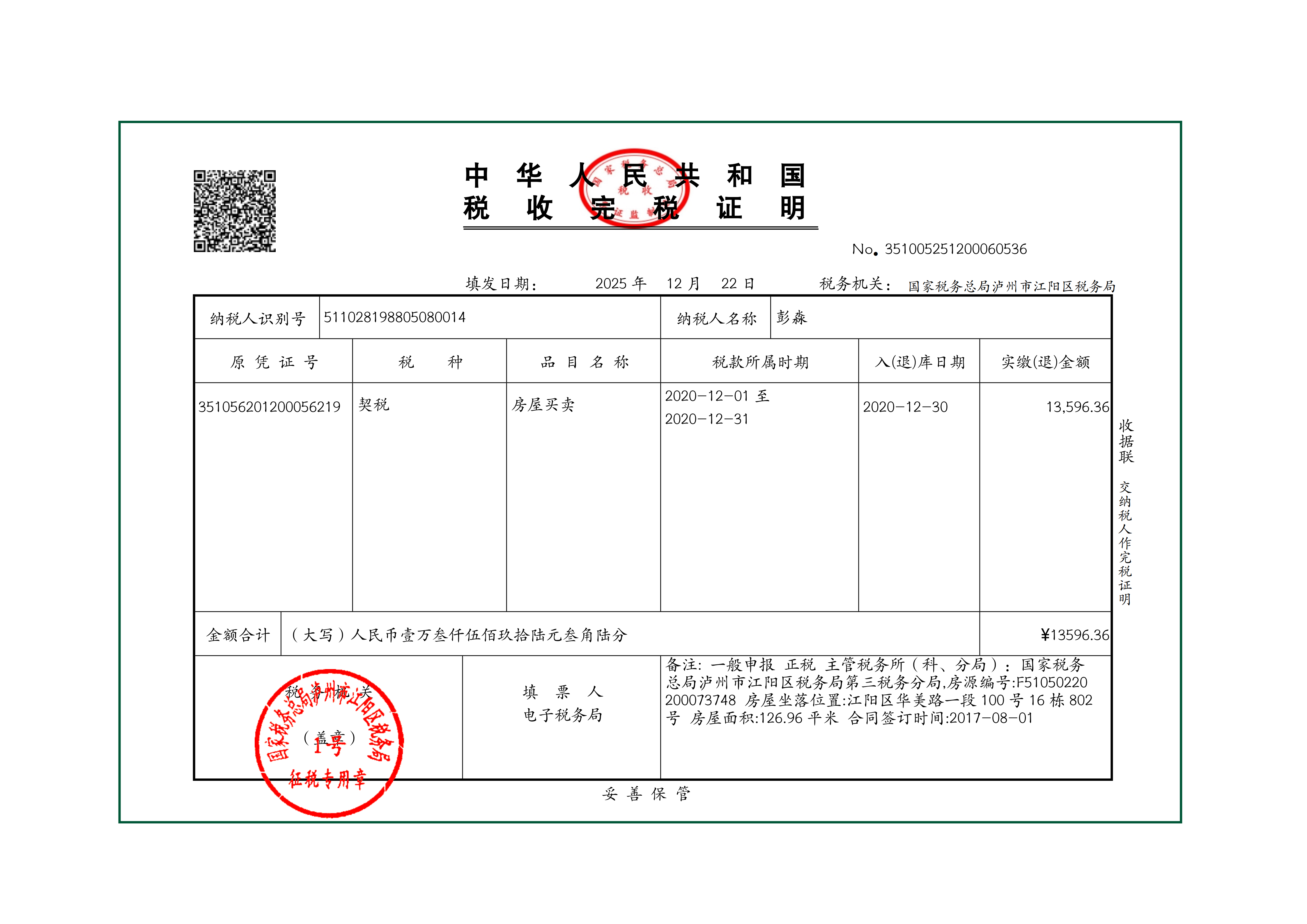 本人于12月24日到泸州市恒大城小区提交购房完税证明已办理房产证等相关事宜。该小区售楼部工作人员告知本人:“必须交原件,原件必须到政务中心办理,原件是盖了‘方章’的”。本人已在电子税务局上APP上开具了完税证明,因打印版完税证明无法彩色打印,故不能提供“鲜章”。本人认为电子版完税证明具有法律效应,该处工作人员应予认可。