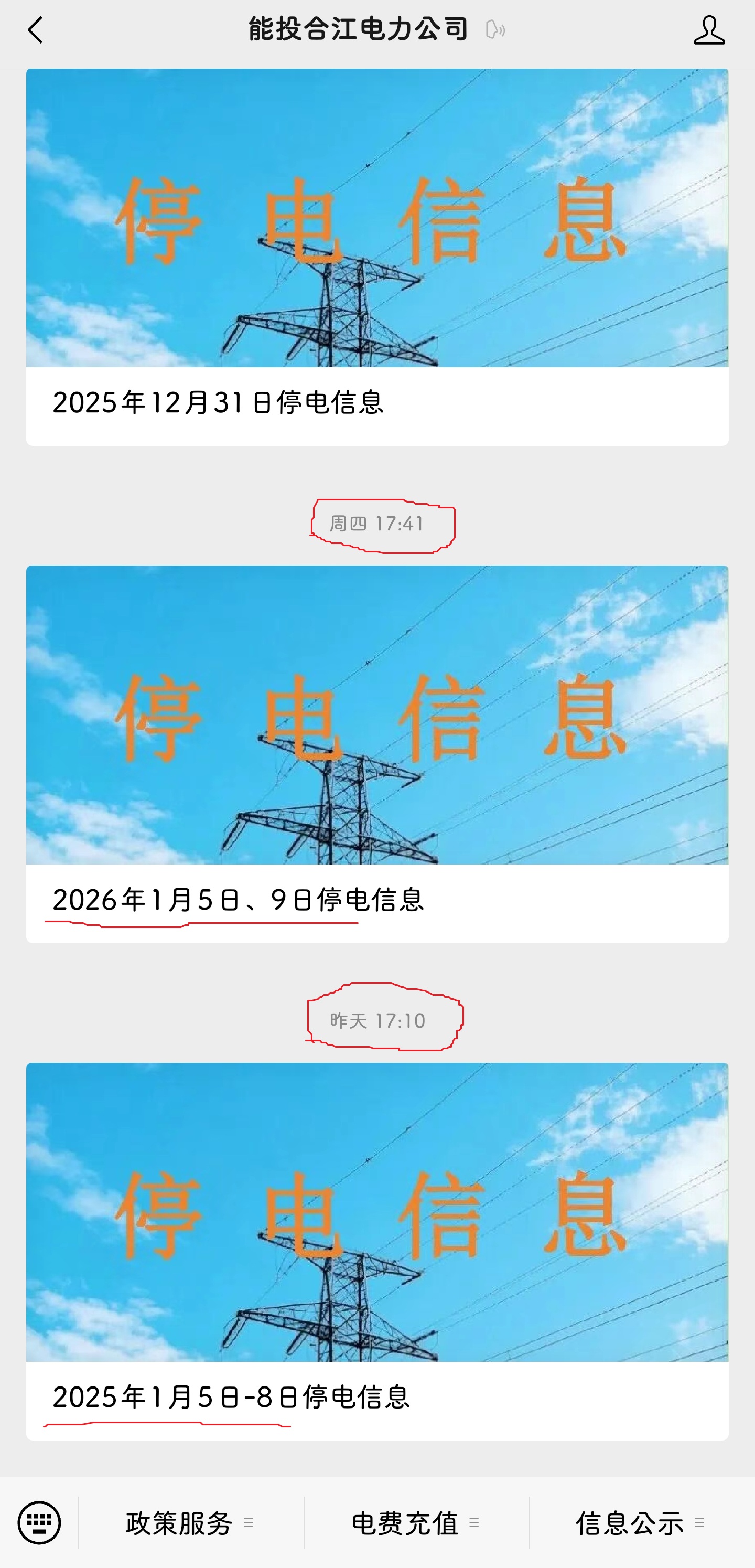 因为停电,所以打开能投合江电力的小程序看看停电通知。这一看,终于明白、理解为什么频繁停电、想停就停等问题多年来无法解决。通过一个小小的停电通知就看得出整个电力公司的管理完全形同虚设,连信息发布这种需要严谨对待的事都多次出错、频繁出错。可以看得出连需经过多次校对、层层审核的基本流程都没有,完全就是随意的发布,无人审核和校对。足以窥见其内部管理是多么的散漫、乱,甚至可以说是烂透了。