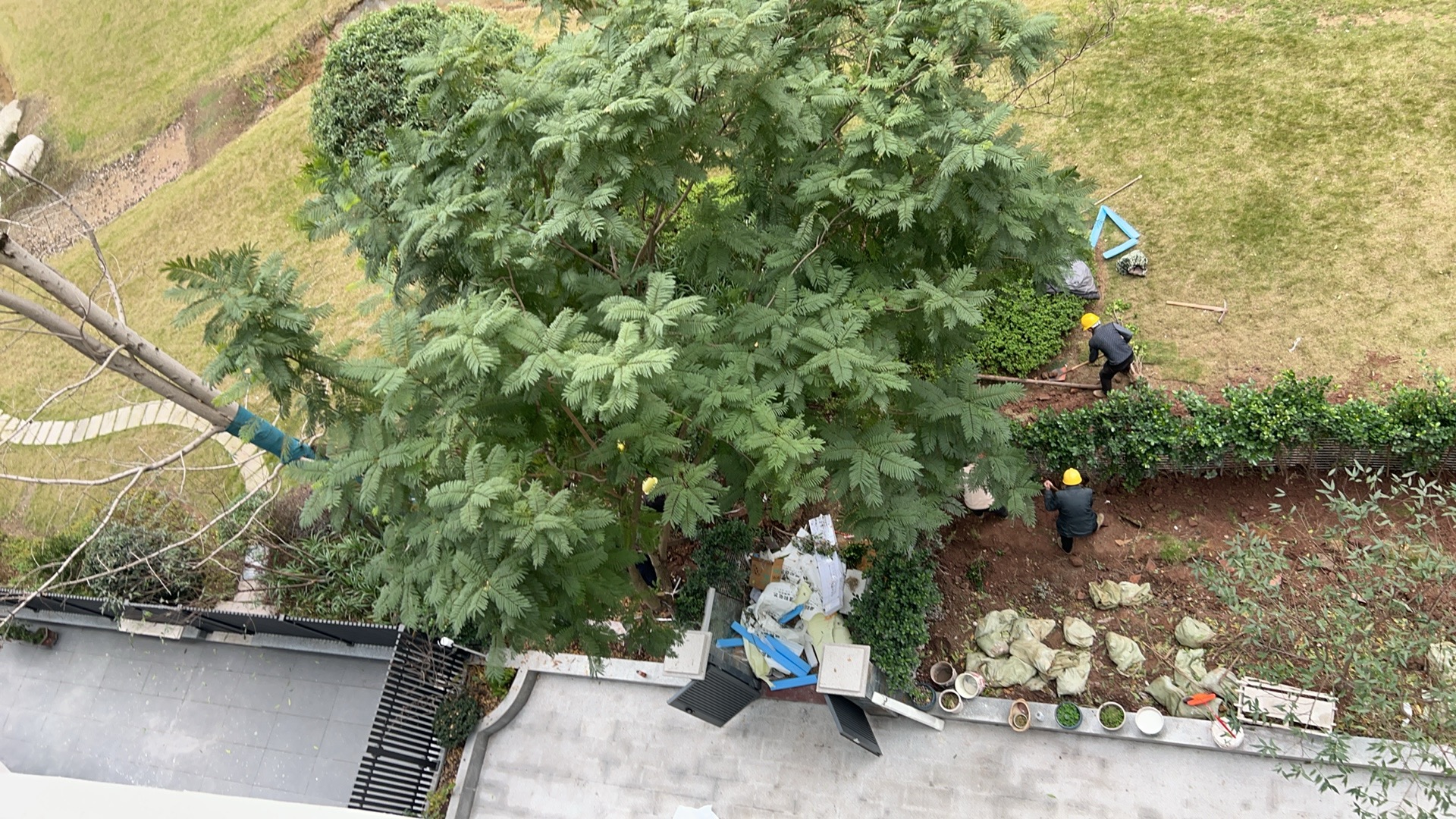 三溪江湾城52号楼1楼03号占用绿化带私搭金属棚扰民,侵占群体利益,私自外扩公共绿化带,圈地架网做花园,影响整体美观以及通行