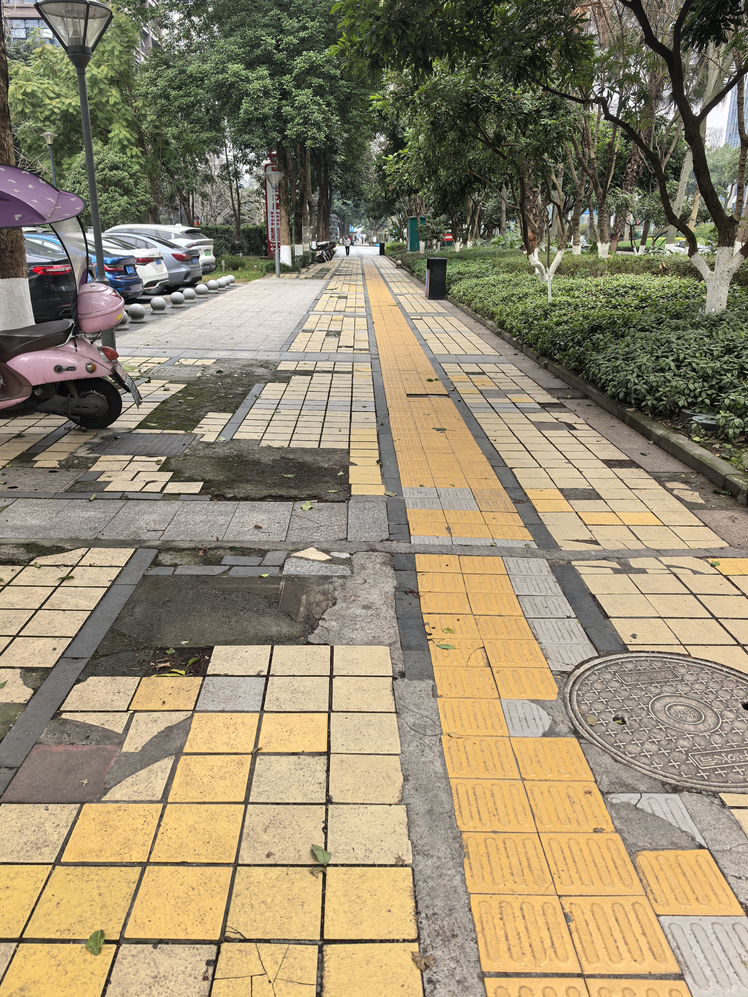 金融中心区域属于泸州市重要的节点,但酒城大道蜀道集团段的人行横道铺装坑坑洼洼,破烂不堪(有图为证),这种景象已经持续了好几年,与紧邻的兴泸大厦前的人行道形成鲜明对比,不仅风貌不佳影响观感,更有安全隐患,容易崴脚。请城管部门重视,加快改造。