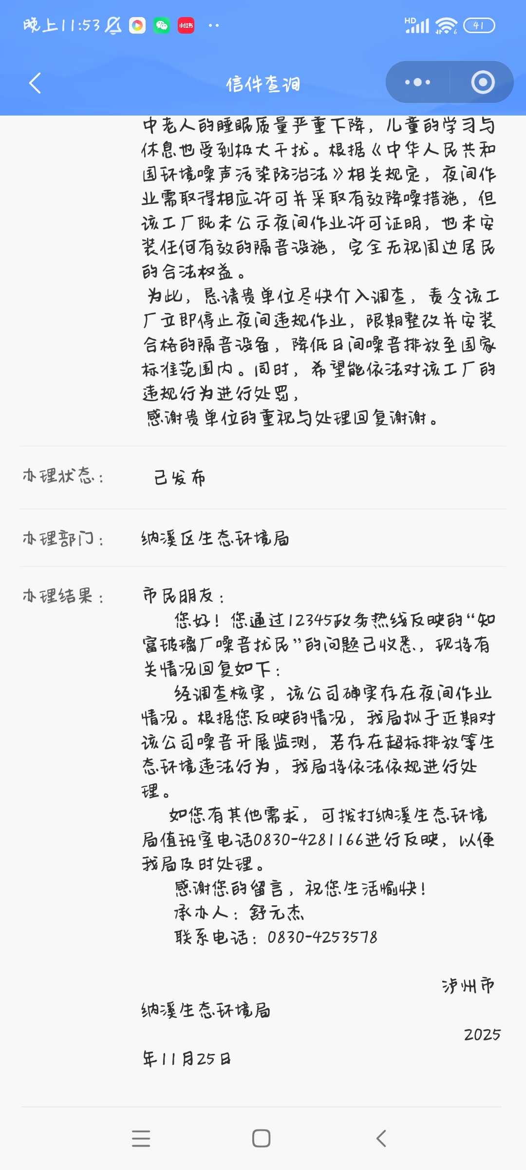 11:45:05 纳溪区生态环境局 已回复
