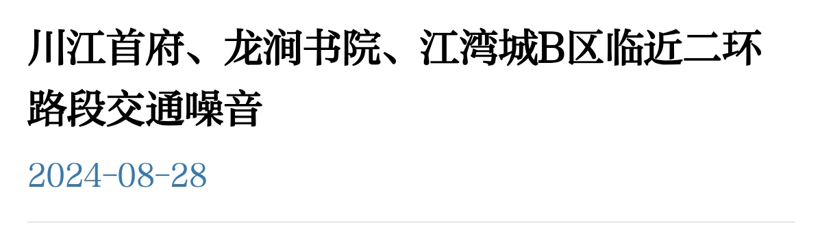 您所反馈的项目已竣工投用,现项目已进入运营管理阶段,我单位代建管理职责已完成。为科学准确查明二环路投用后的噪音影响情况,我单位已委托专业机构开展二环路声环境监测评估,并已完成评估报告编制,依托评估报告谋划生成了二环路声环境项目。江湾城B区在二环路声环境项目拟实施点位内,目前正开展项目前期工作,最终实施点位以专委会审定的方案为准。