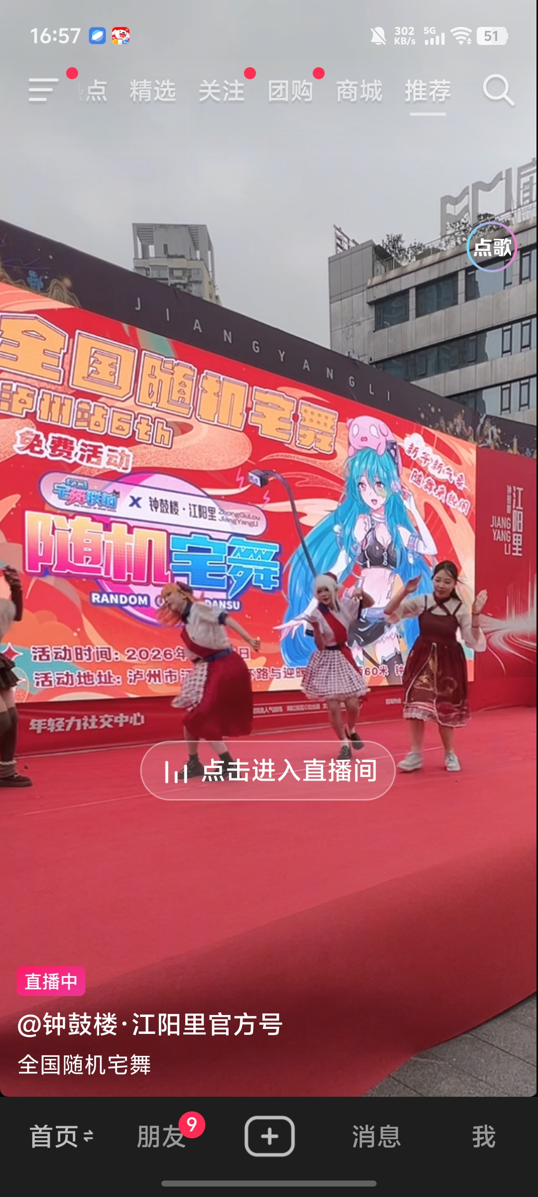 根据您所反映的情况及提供的照片调查核实为“江阳里”开展的“全国随机宅舞”的活动。该活动为企业自主开展“人气引流”形式为目的,以“卡通漫画”“人物造型”角色扮演舞蹈的表演行为。根据我局职能职责,已督促该企业在开展相关庆典、节假日、日常促销活动时严格活动内容审核,增加“弘扬核心民族精神”“以民族精神为内核”的主题活动,并向江阳区其他大型商超、商业综合体宣传。