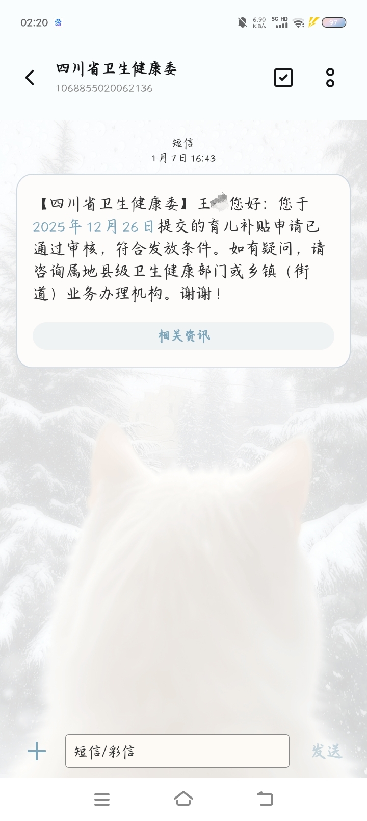 经查,我单位工作人员通过惠民一卡通平台查询到您申领的2026年育儿补贴,目前已经县区确认通过。根据《四川省育儿补贴制度实施方案》规定,2026年起将在每季度第2个月,向上个季度审核确认的对象一次性发放年度育儿补贴。