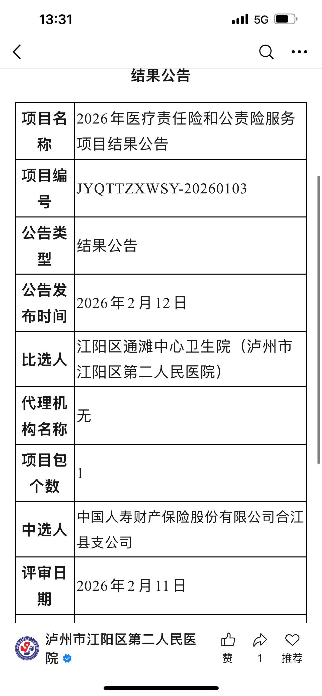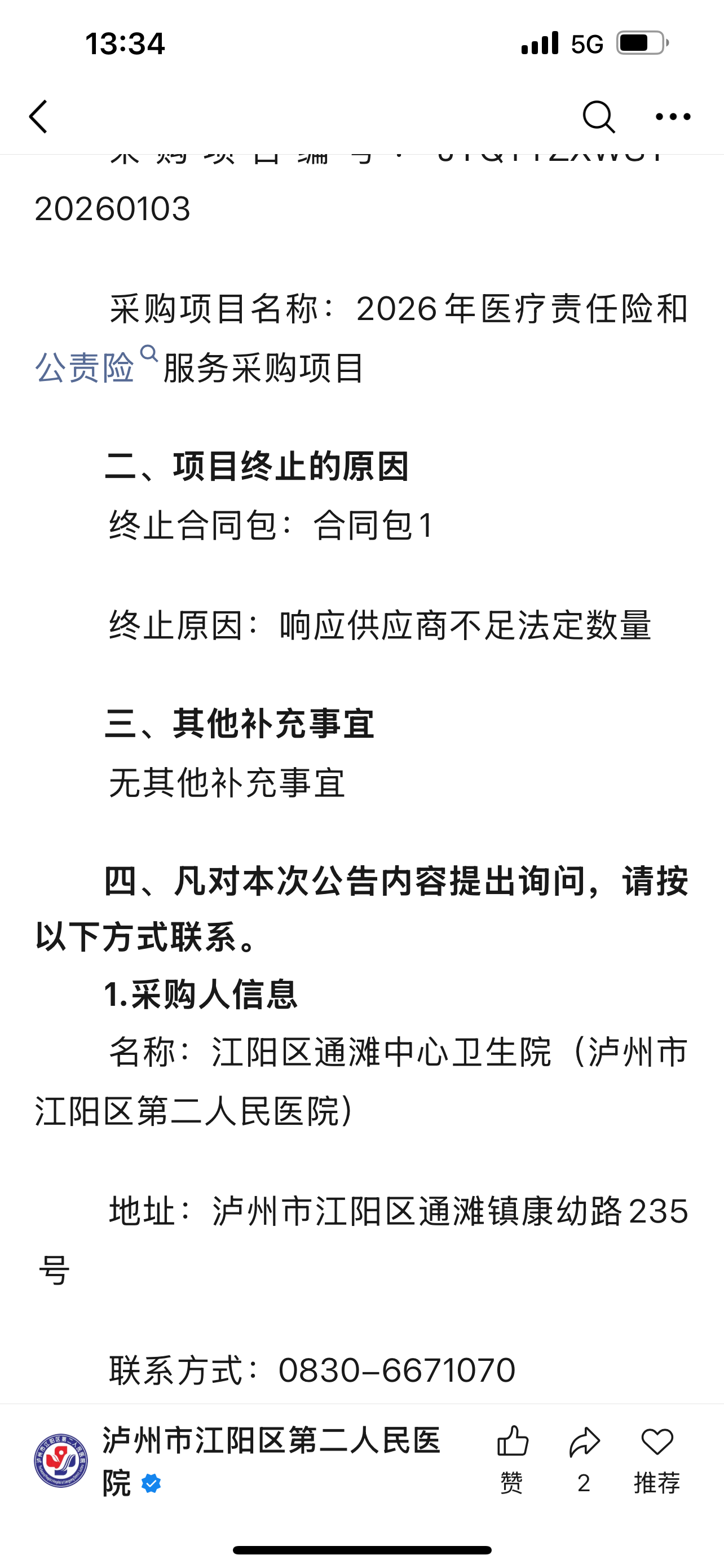 希望彻查江阳区通滩中心卫生院2026年医疗责任险和公责险服务采购项目是否有效