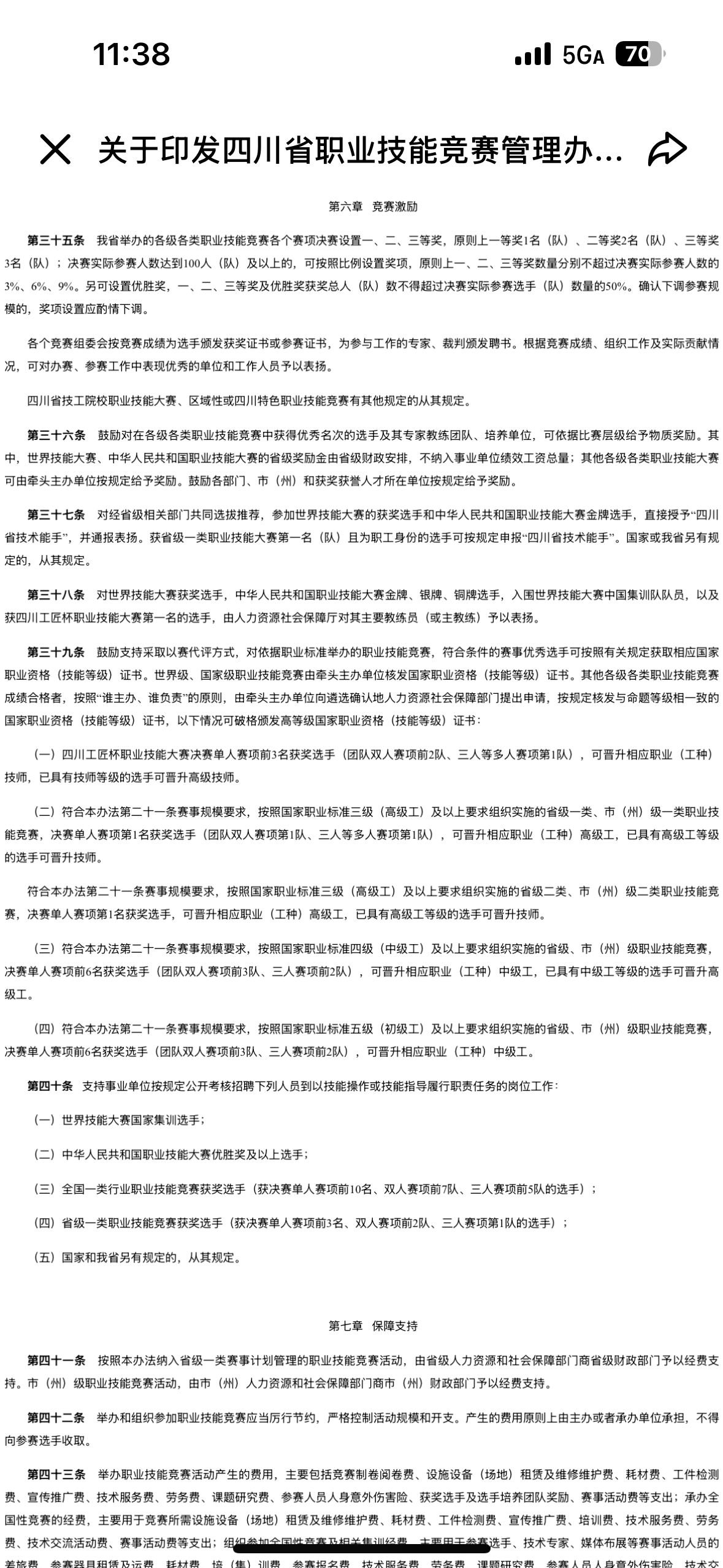 我之前获得泸州市第二十届职工职业技能大赛配电综合业务比赛二等奖,已具备中级工资格,先申请直接认定高级工。同期比赛获奖人员已咨询人社局,人社局称该比赛无法实行技能认定。根据〈四川省职工技能竞赛管理办法〉(川人社规[2024]9号)第六章第三十九条(三)规定,符合本办法第二十一条赛事规模要求,按照国家职业标准四级(中级工)及以上要求组织实施的省级、市(州)级职业技能竞赛,决赛单人赛项前6名获奖选手(团队双人赛项前3队、三人赛项前2队),可晋升相应职业(工种)中级工,已具有中级工等级的选手可晋升高级工。泸州市第二十届职工职业技能大赛配电综合业务技能比赛(含农网配电营业工):