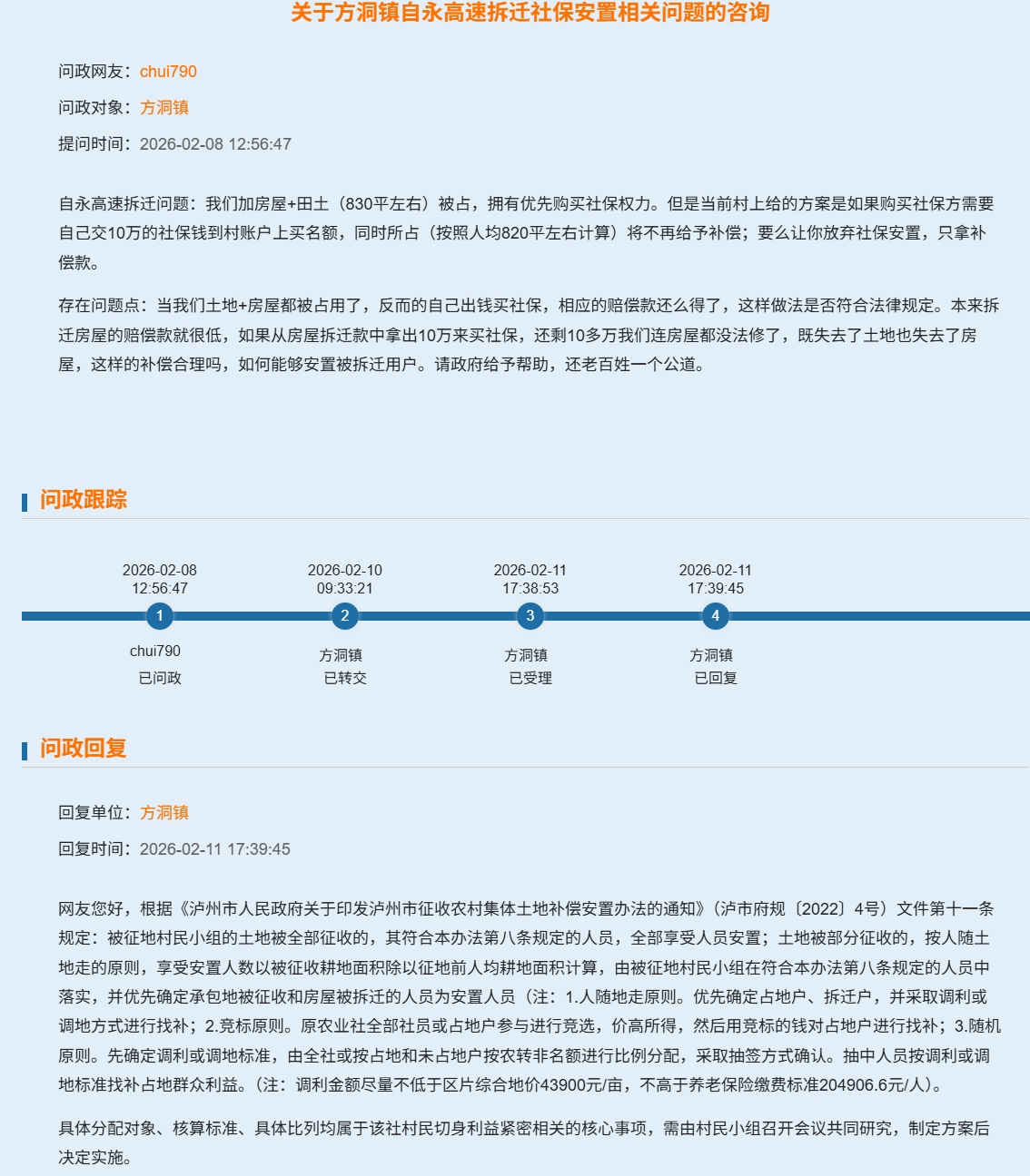 - 拆迁社保按照问题:需要我们拆迁人员出10万费用外加占地的钱买名额,如下图咨询方洞政府的回答,这样的方式合理吗,这不是完全在坑老百姓吗。