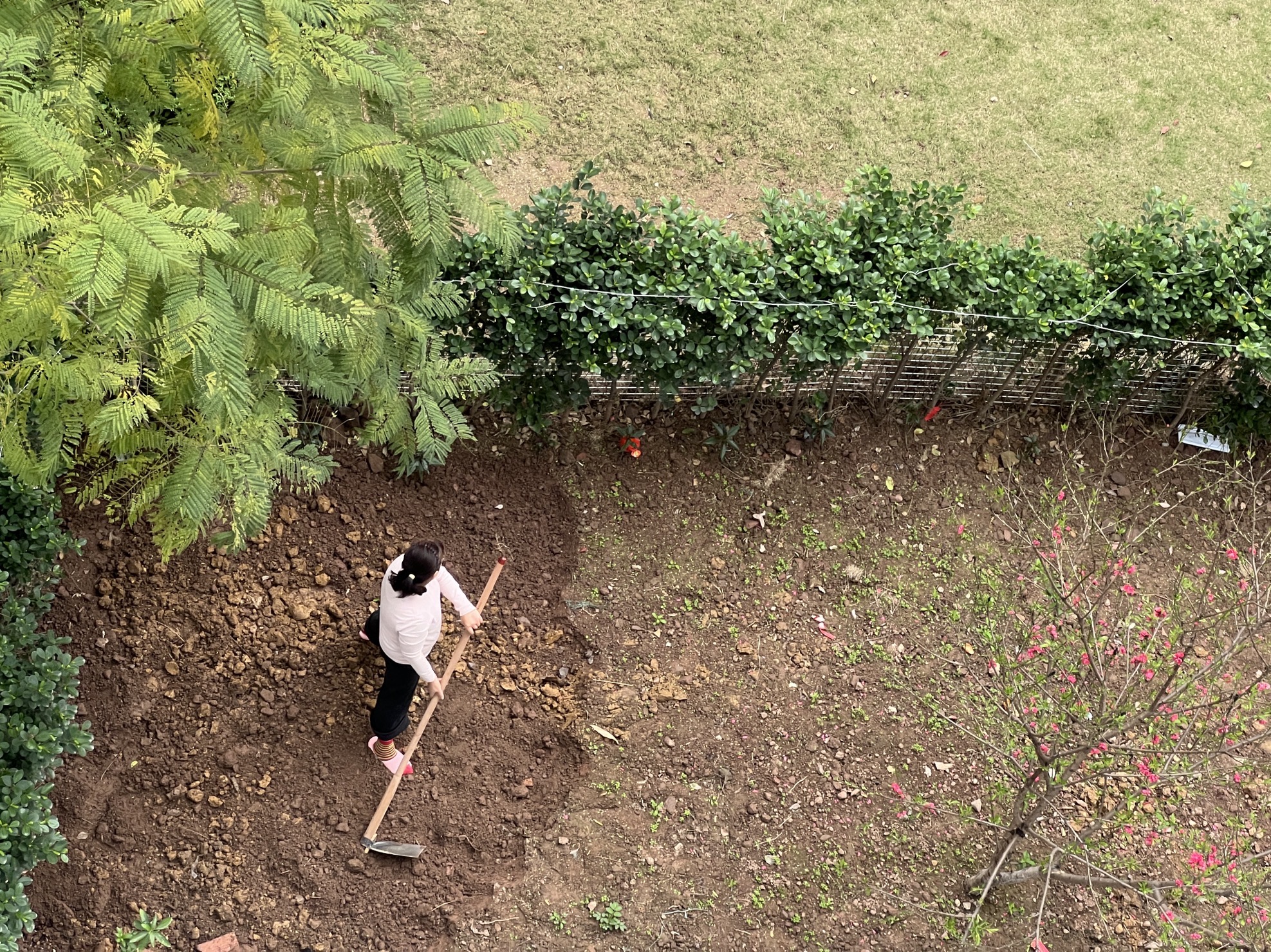江湾城b区52号楼一楼102住户侵占公共绿化为自家菜地花园,面积巨大,拒不恢复,肆意栽种