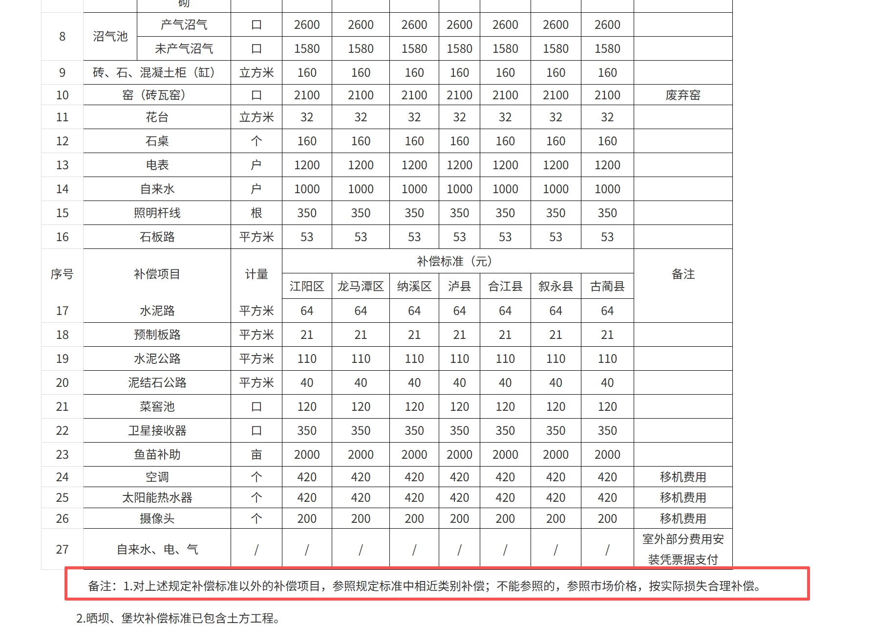当前泸州政府补偿标准规定: