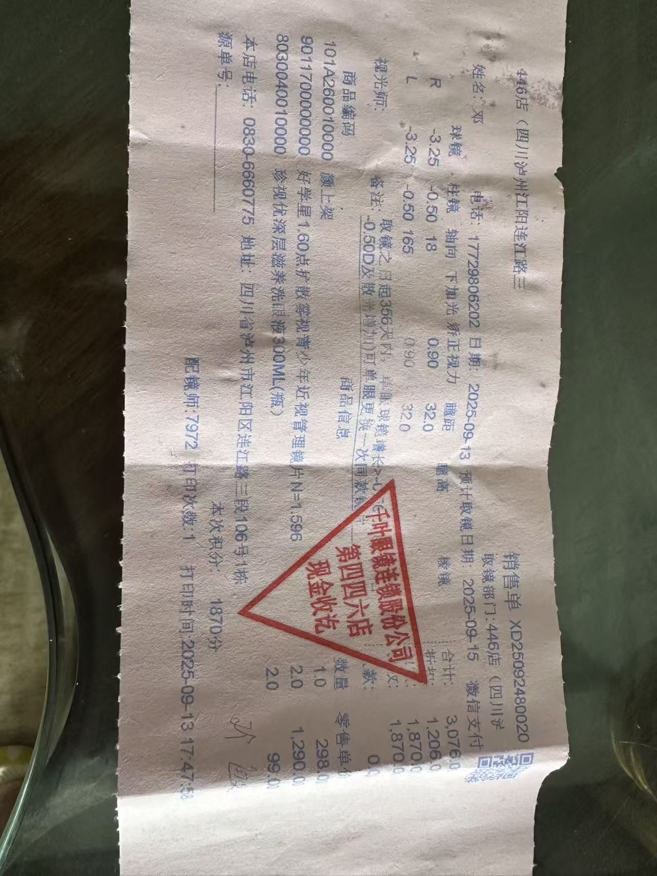 去年给孩子配了一副眼镜,开的销售下单和给的物品不符合,没有洗眼液,但是销售清单上有洗眼液。