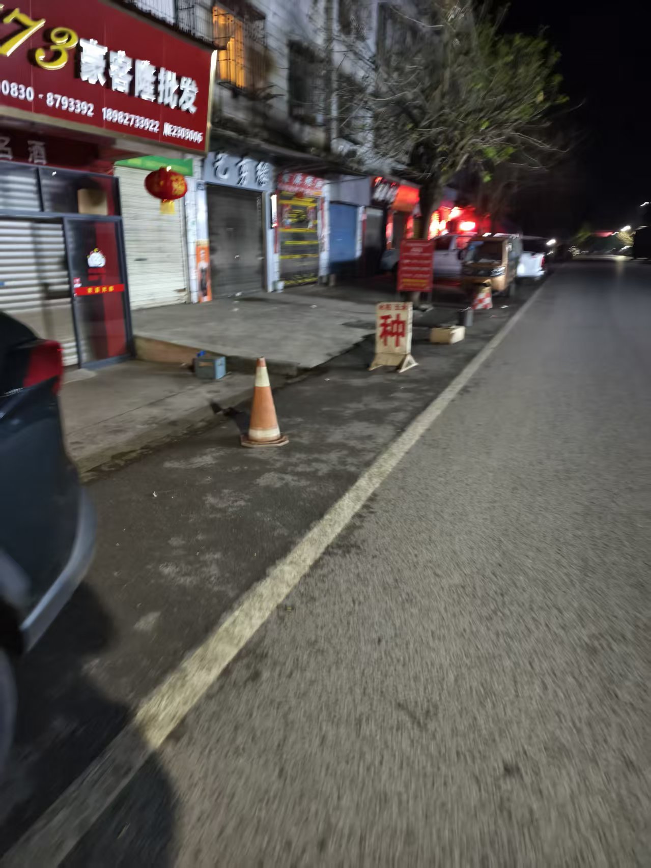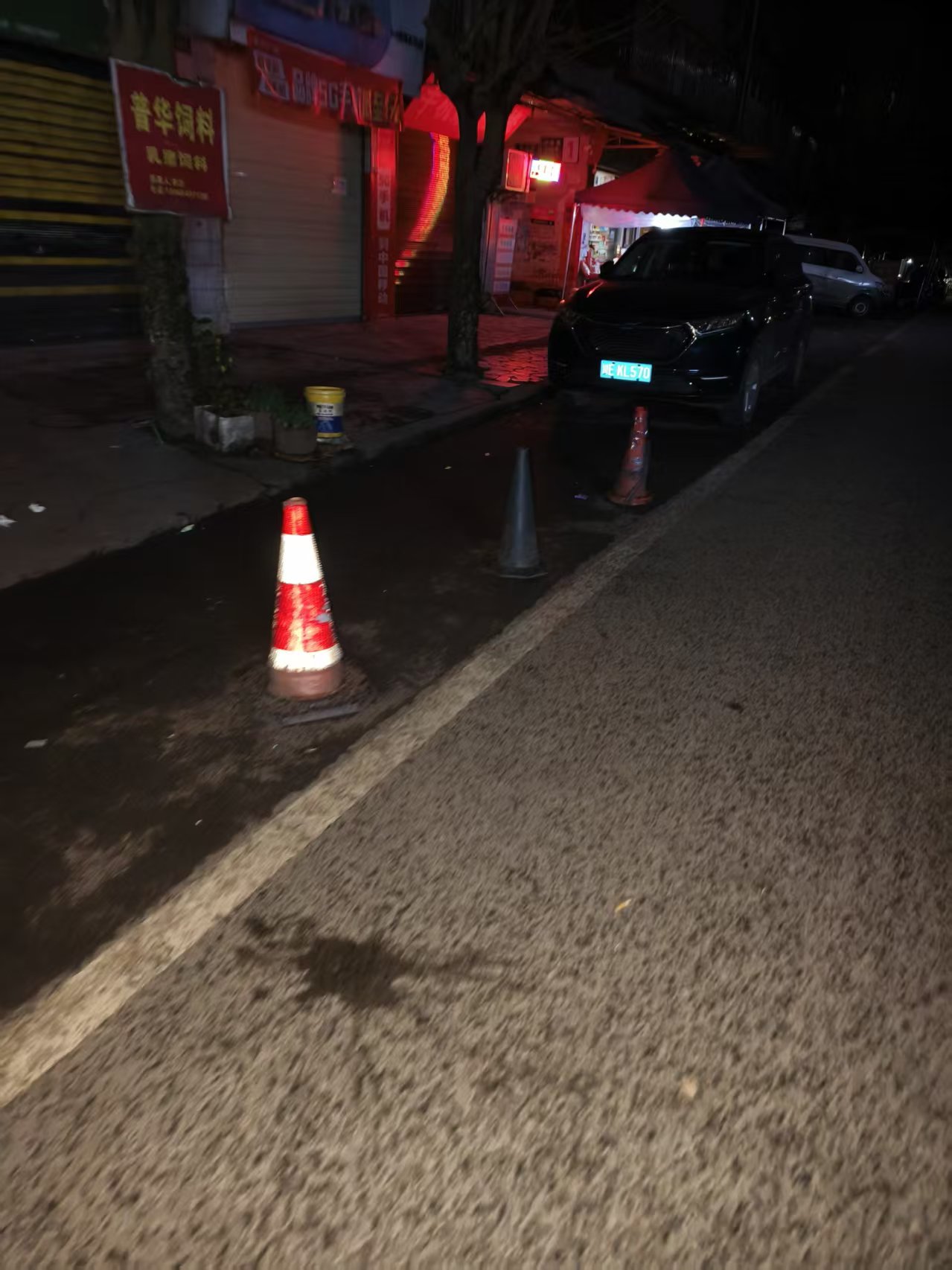 商铺违规占道经营,竟将马路停车位也占用,存在严重的安全隐患,请主管部门重视!!