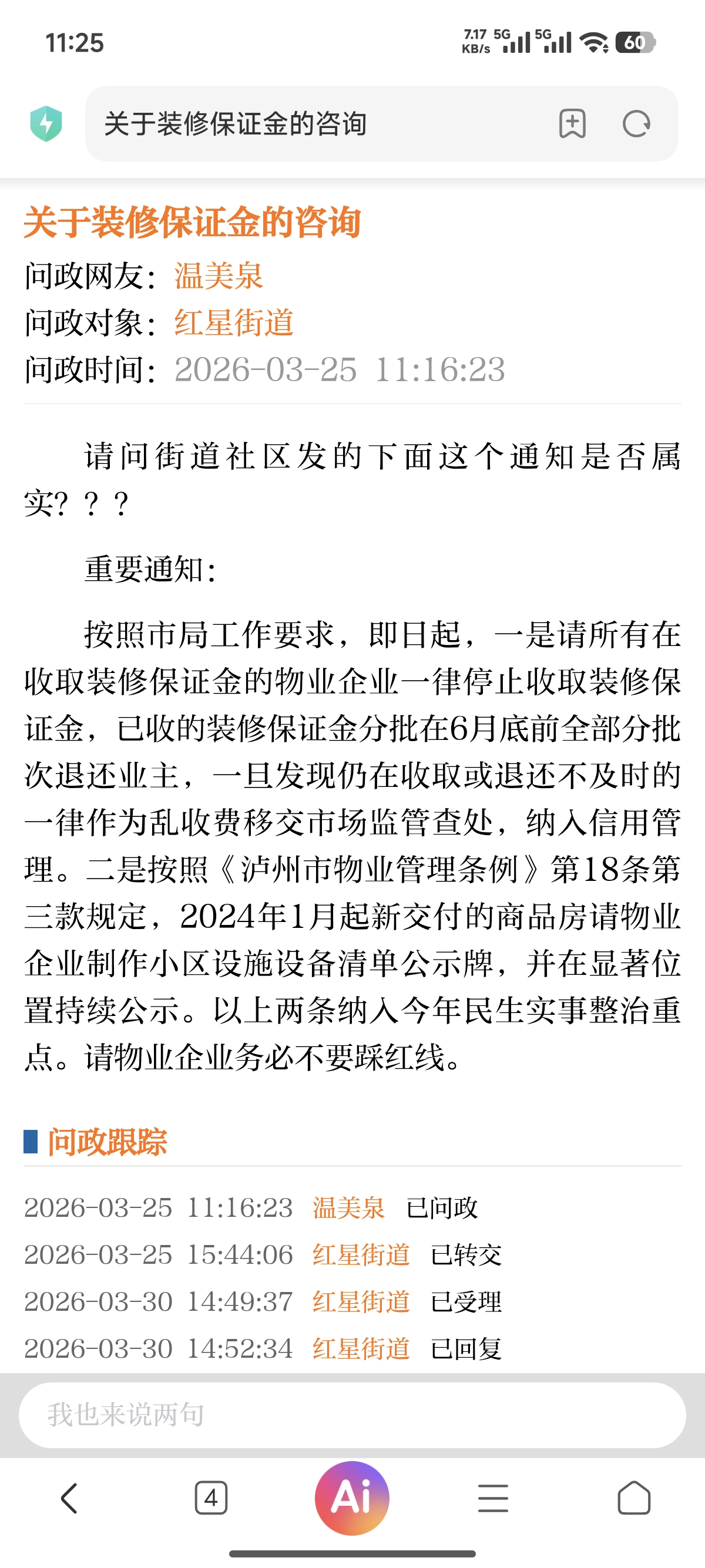- 问政网友:璞玉呀