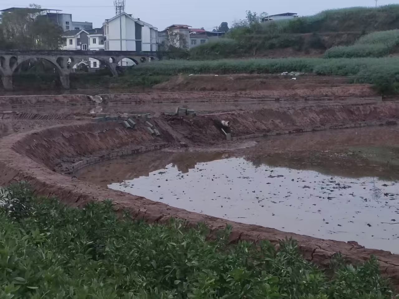 经核实,您反映问题是您本人的囤水田改造项目,该囤水田只有田坎部分迎水面设计了砼块,其余部分图纸设计上没有砼块。