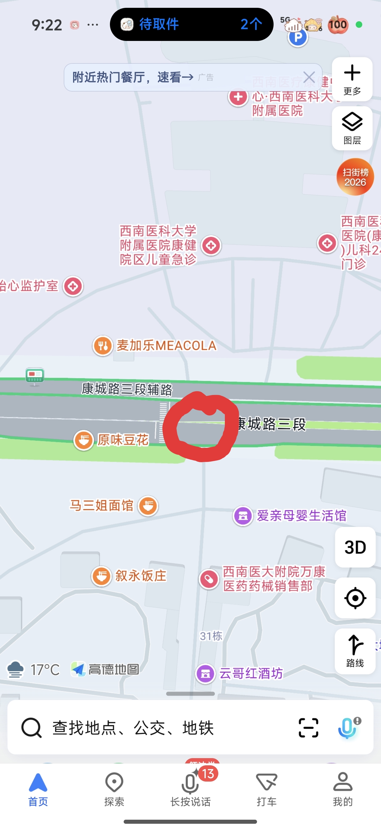 康城路三段,西南医科大学附属医院康健城院区和恒大城中间的围栏取消了,从万象汇方向来的车可以直接从人行横道前面,紧贴花园的地方掉头吗?