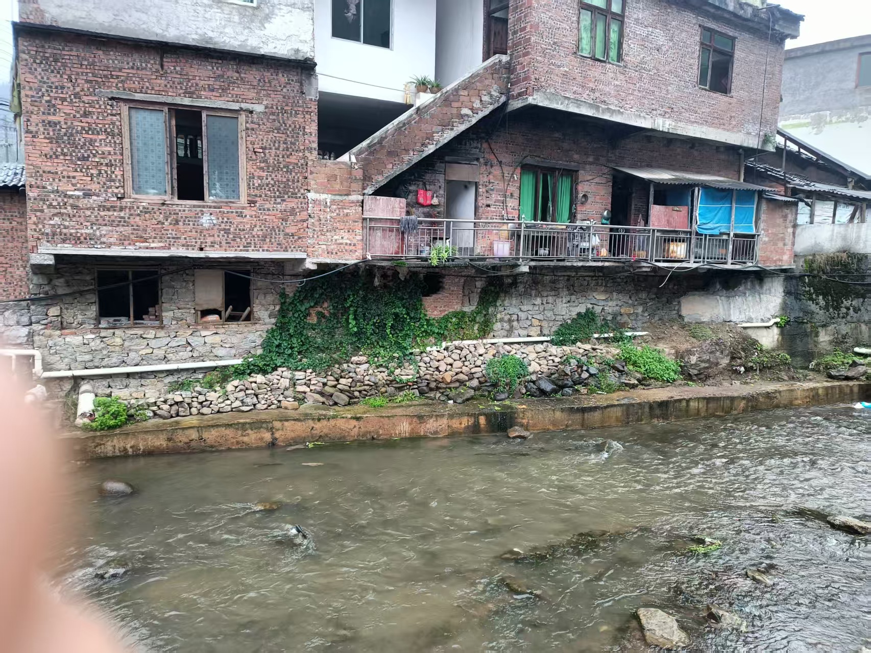 经现场排查,您户在河道管理范围内未经水利行政主管部门审批,擅自修建附属设施,违反《中华人民共和国防洪法》《中华人民共和国水法》相关规定,县级主管部门已依法下达整改通知书,明确违法事实、整改要求及相应法律后果。为切实保障您的住房安全,镇工作人员已建议您在河道管理范围外采取地基加固、修建堡坎等防护措施。