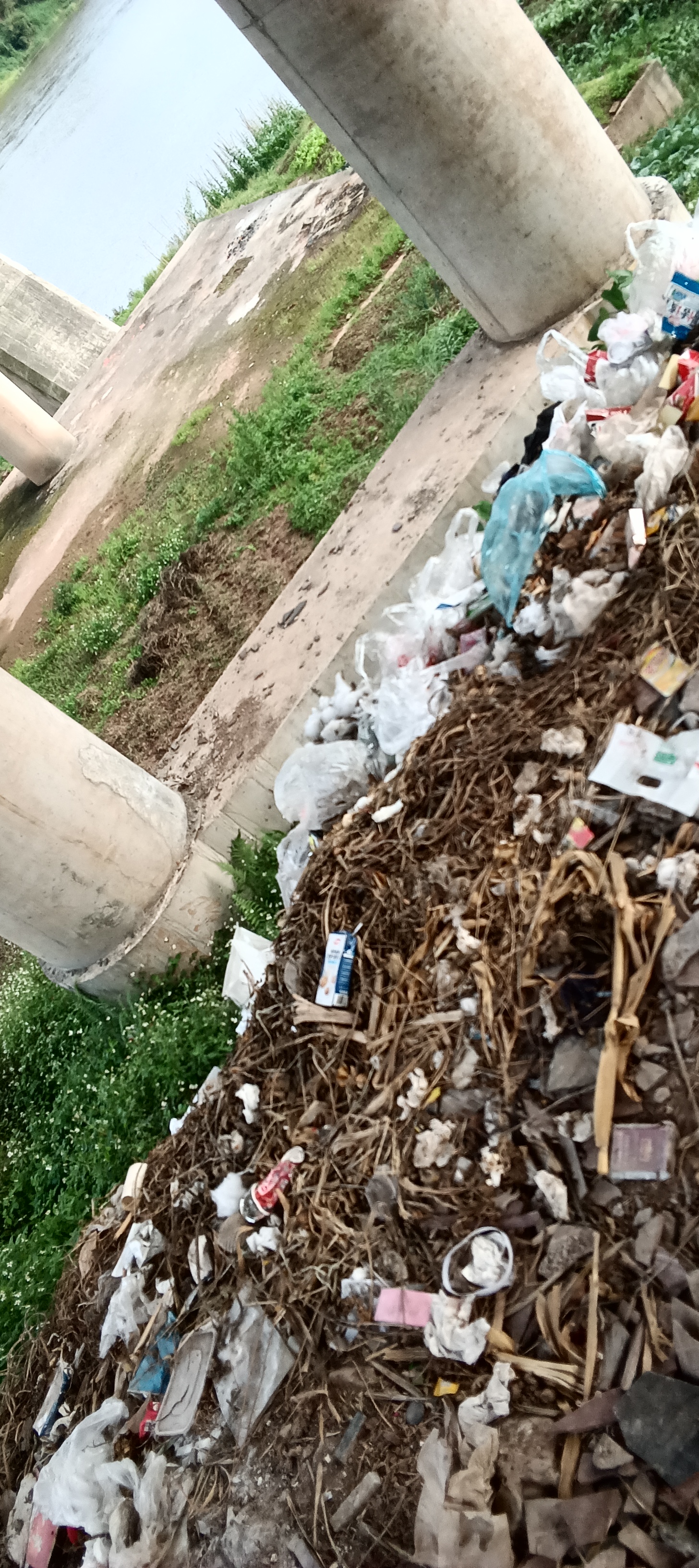 在先市大桥是桥墩下,临近几户人家长期倾倒垃圾在桥墩下,赤水河岸边
