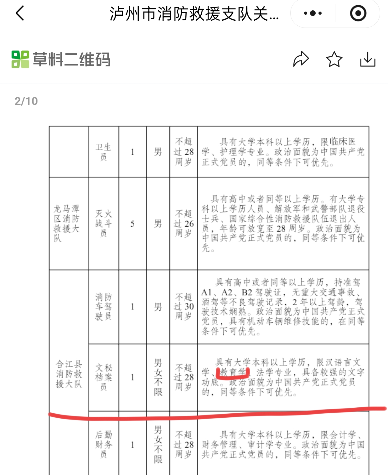 合江消防救援大队文秘档案员招聘中教育学到底包不包括学前教育?建议相关部门核实回复