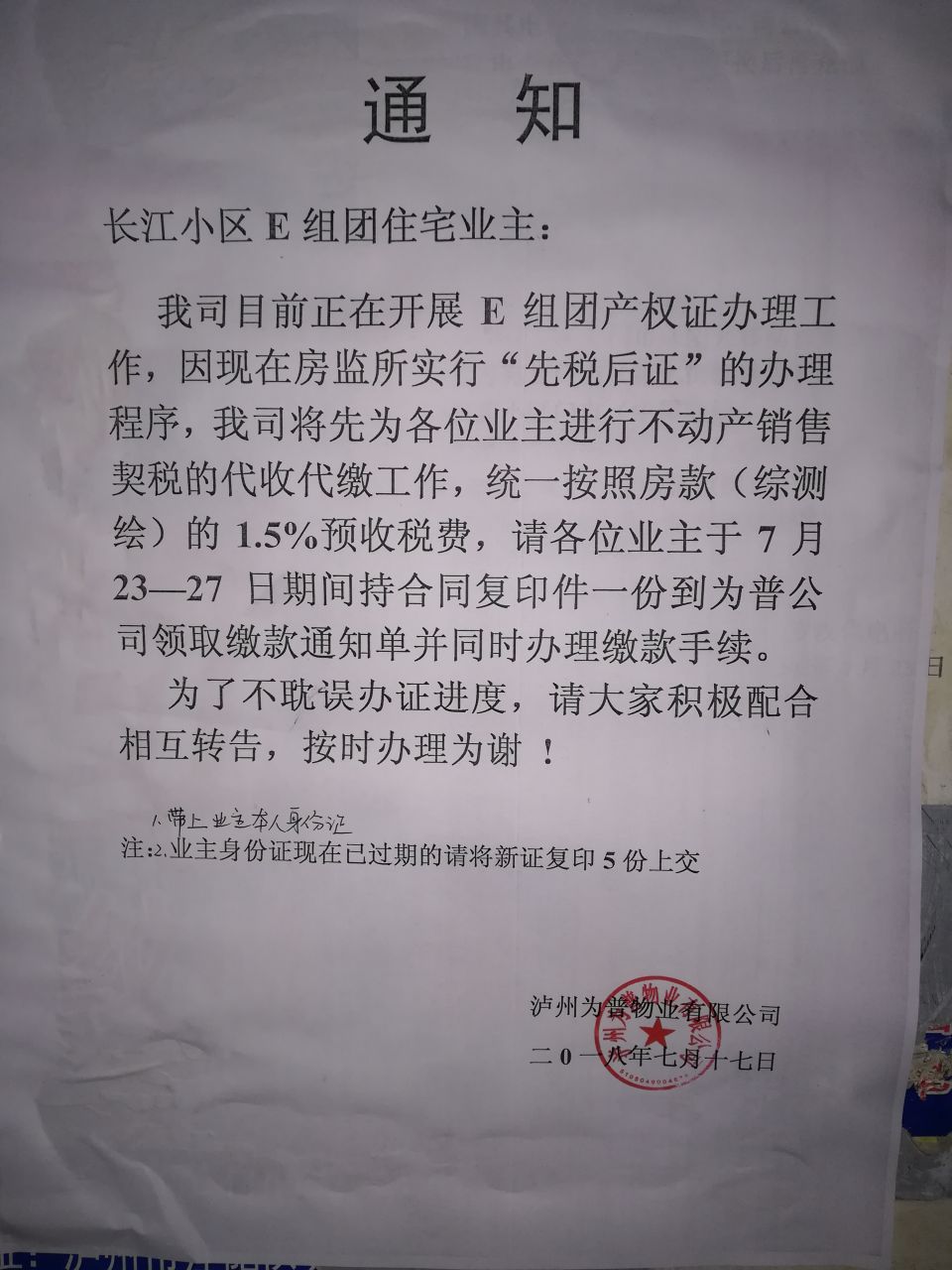 我们龙马潭区高坝长江小区在2015年交房的时候就交了契税的,咋个现在办证又要交契税哦,撒子意思哦?