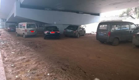 国窑大桥通车了,桥下不晓得啥子节奏?一到下雨到处都是黄泥巴,我看那个路面不晓得还透水不。车都停到人行道上了,这是要修啥子。