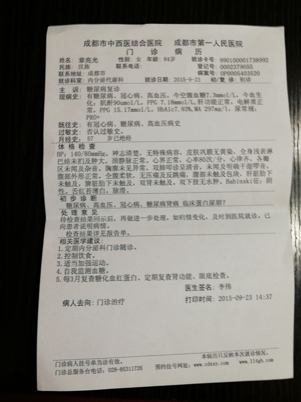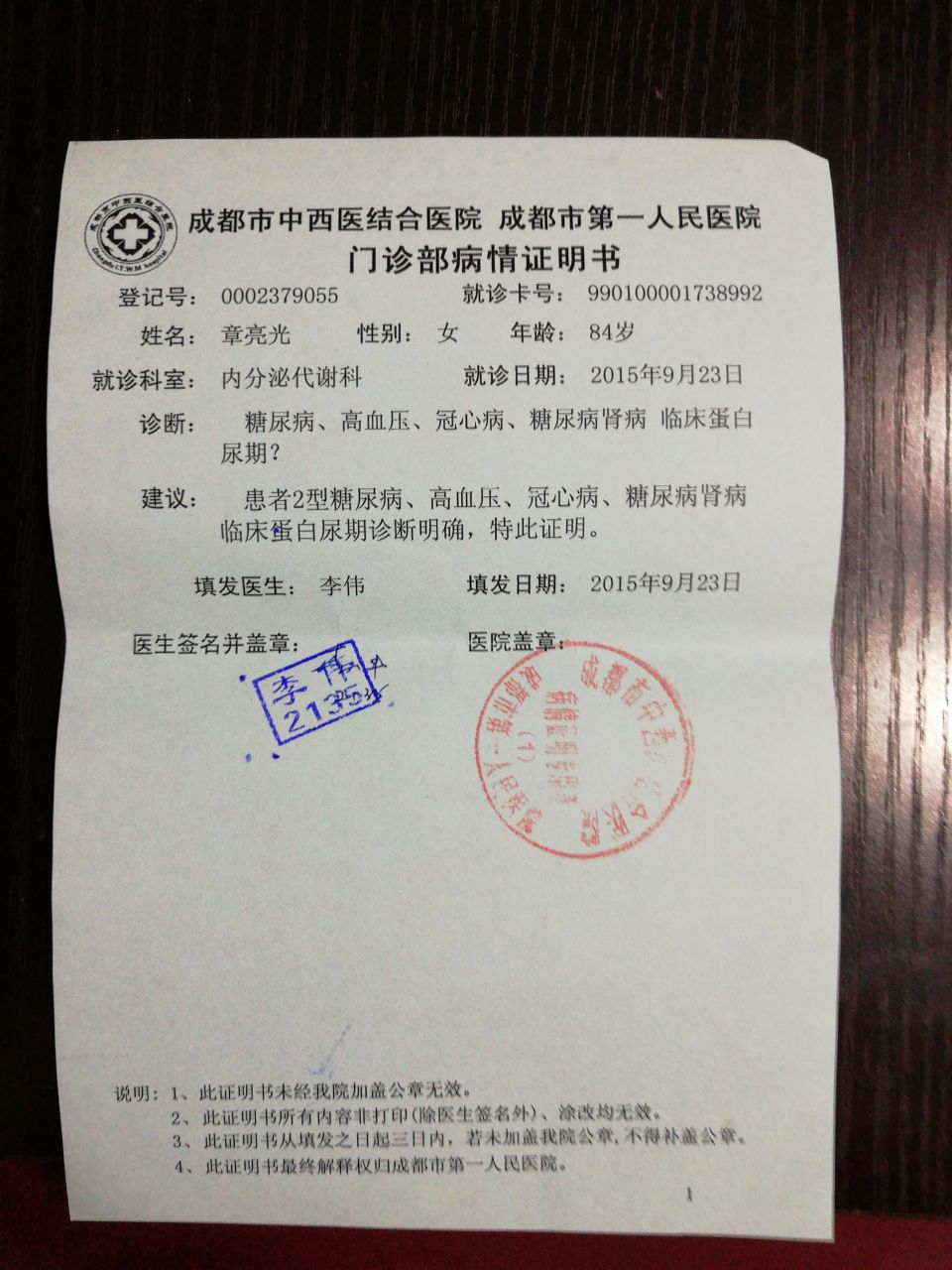 我们3月前提供的章亮光资料中,有符合I类门诊特殊疾病认定糖尿病认定标准的以下相关资料: