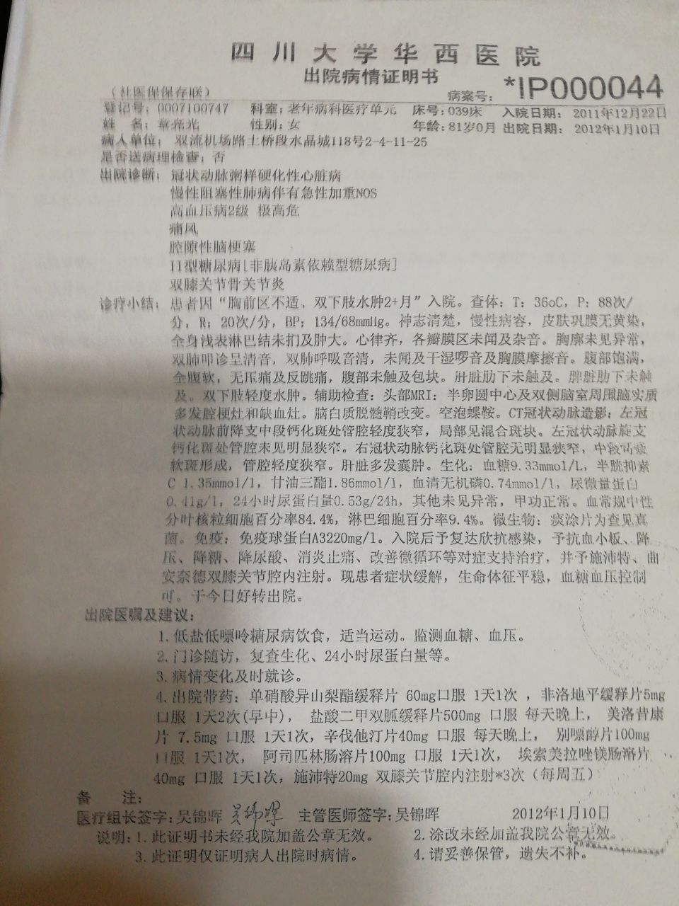 2、提供有四川华西大学医院的出院证明书和成都市中西医结合医院成都市第一人民医院两次门诊诊断证明书。(附件2、3)