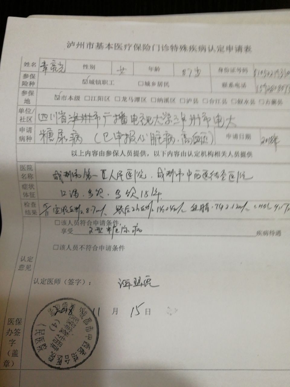关于章亮光糖尿病特殊门诊申报未被审核通过的质疑 泸州市医保中心: