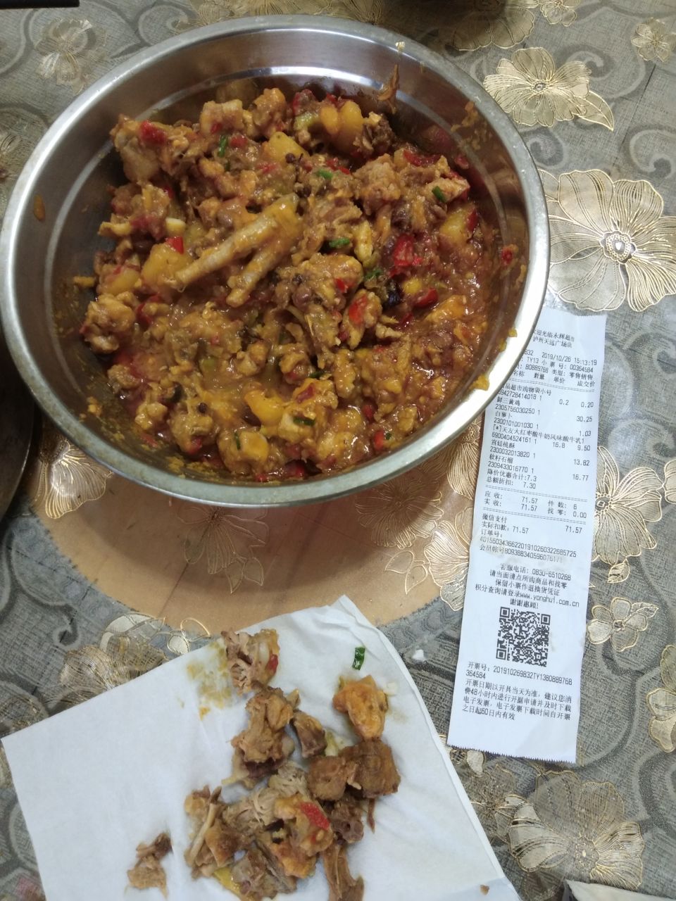 本人于26日15时左右在蓝田永辉超市购买半只鸡,反复问了售货员说是今天杀的。回家加工后吃饭时吃出了臭味。立即电话与超市沟通。一会儿回复我说加微信退我钱就好了,我没同意。再过了一会儿一个说是能处理事情的人回我电话说可以负责,但是要求我把东西跟他们送过去。我也没同意。打了食品监督局投诉,值班人联系了告诉我对方要求我把东西拿过去,让我和对方商量,他只是一个值班的,别的不知道怎么处理???我在想难道不是该又人把东西拿走检验吗?难道非要吃死人才能得到重视吗???