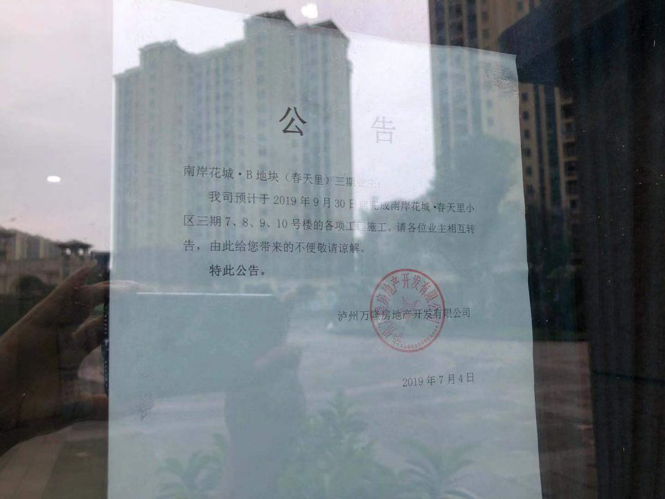 南岸花城春天里延期交房。合同交接日期早已过去。我们春天里的业主们关于这事不是第一次问政了。一次推一次的接房通知。但现在已是2019年最后一个月了。今天是2019年12月1号,来小区现场看到依然未完工。购房资金是一笔一笔攒下来的血汗钱。延期交房使我们一直租房住,开发商从未提谈违约金。