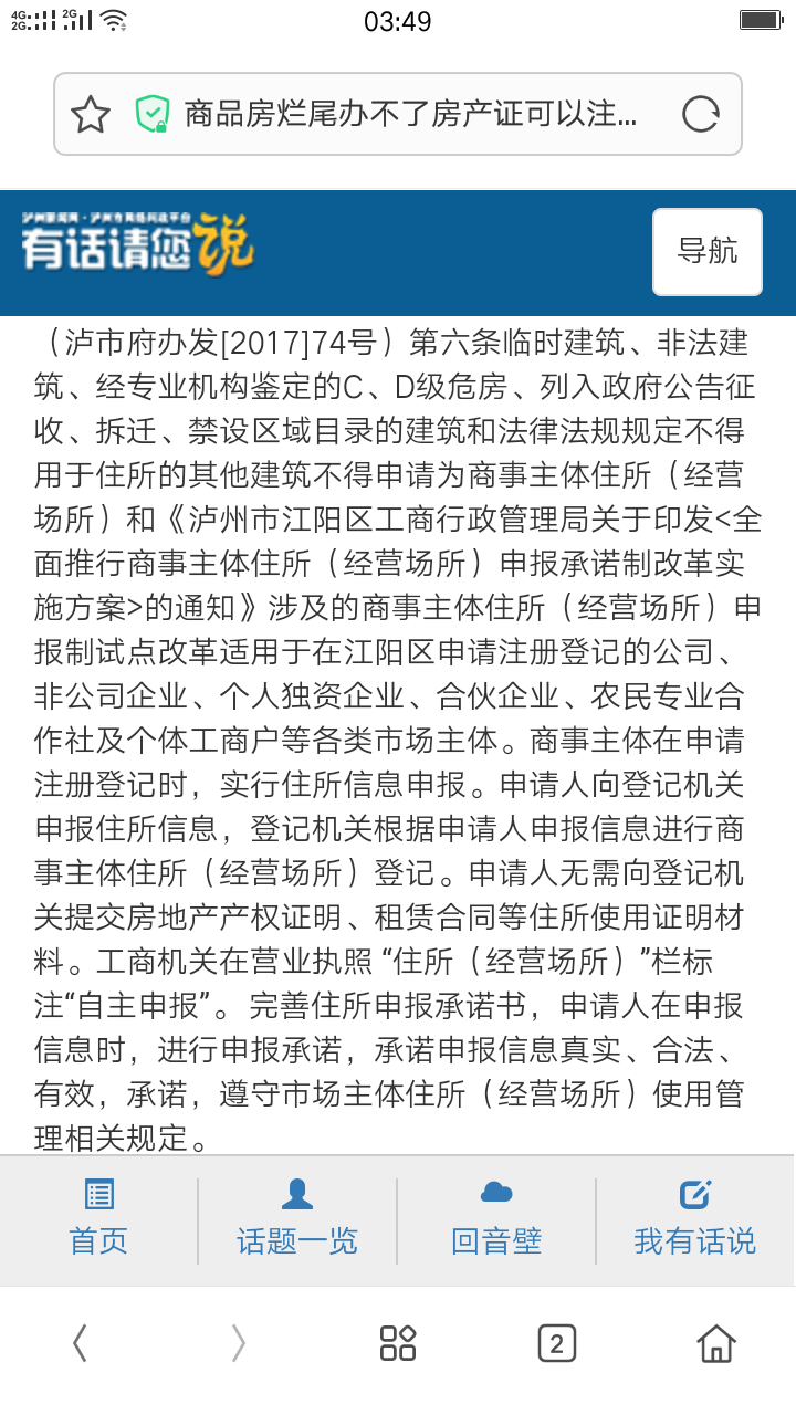 本人想办理个体营业执照,但是用于经营场所没有网签,办不了房产证,地方工商所说办不了执照,请问一下江阳区这个自主申报经营场所在我们叙永县适用吗?谢谢!