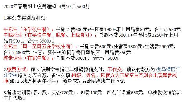 2、淡思学校收费项目及标准于每学年秋期开学收费工作时公示,因春期受疫情影响,在未收到新的教学时间安排的情况下按原标准执行,学校承诺待收到正式教学时间安排后,根据实际情况据实结算。